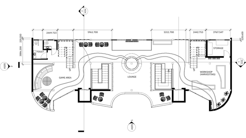 A space for users who feel pressured by expectations and the fast pace-life in singapore. inspired by hip hop culture and its roots in self-expression, the space allows users to pause, observe and express freely. Angular forms represent structure and societal pressure, while fluid curves symbolise freedom and creativity. together, they create a journey from restraint to expression, offering a space for release, community and rediscovery.